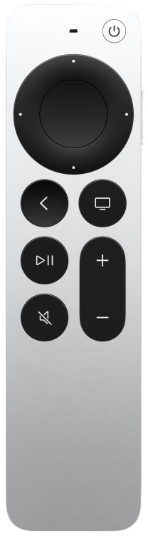 A touch-enabled clickpad. Easily swipe through episodes, scenes, or frames with an intuitive circular movement. Turn your TV on or off, change the input to Apple?TV?4K, and control the?volume.