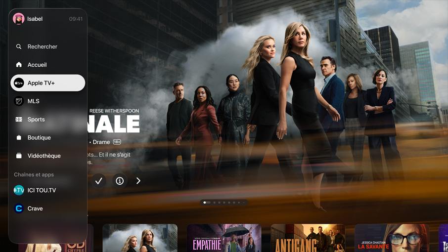 Regardez des séries, des longs métrages, des émissions pour enfants et d’autres créations des plus grands noms de la télé et du cinéma. Des exclusivités Apple Originals s’ajoutent tous les mois4.
