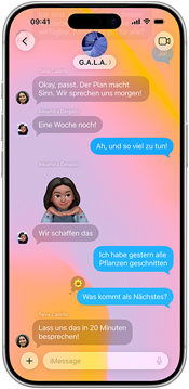 Liquid?Glass sorgt für ein beson-deres Erlebnis über Apps und Ger?te hinweg. Das macht es ein-facher, die Apple Produkte, die du im Laufe des Tages nutzt, gemein-sam zu ver-wenden.