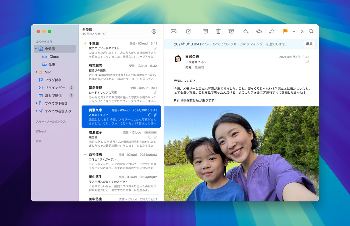 iCloudメールは、iPhone、iPad、Mac上のメールアプリにシームレスに組み込まれた機(jī)能です。iCloud.comを使って、どこからでも簡(jiǎn)単にEメールを送受信できるようにします。スパムからの保護(hù)やフィッシング対策などのセキュリティ機(jī)能も內(nèi)蔵。迷惑メールを、受信ボックスに屆く前に検出してブロックします。@icloud.comのEメールアドレスを設(shè)定する方法はシンプル。しかも、iCloud+のサブスクリプションに登録すると、あなた獨(dú)自のドメインでEメールをカスタマイズできます。