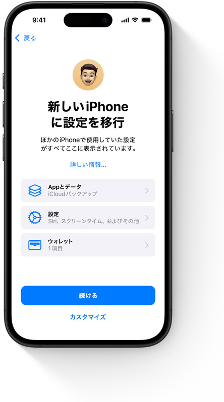 あなたの寫真、ファイル、連絡(luò)先、アプリ、設(shè)定など、すべてをiCloudバックアップからシームレスに移動(dòng)させてデスを復(fù)元できます。新しいデバイスを設(shè)定するのも簡(jiǎn)単です。すぐに以前のデイスと同じように使えます。