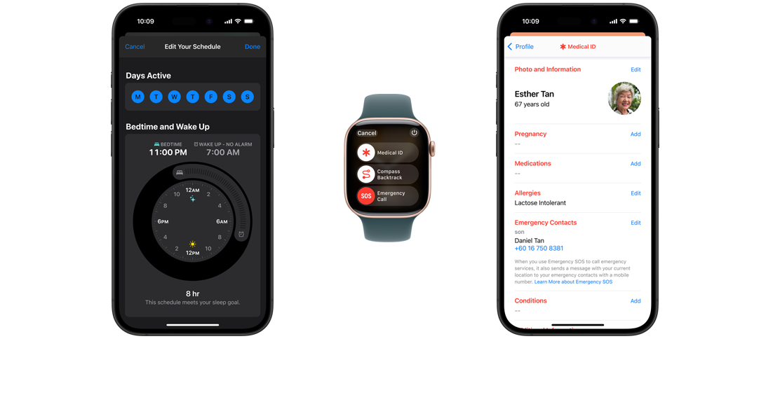 On iPhone and Apple?Watch, emergency personnel can quickly access a Medical?ID with important information like allergies, blood type, emergency contacts and?more.