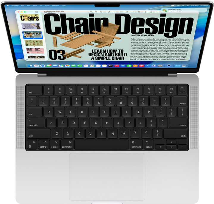 With Continuity?Camera, you can take a photo with your iPhone and instantly see it in an email on your Mac. Or scan a receipt with your iPhone and see it appear in Messages — automatically cropped, straightened, and ready to share. Continuity?Camera works with lots of apps, including Notes, Pages, and Keynote. It’s another way iPhone and Mac just?click. Continuity?Camera also unlocks new capabilities for video calls — like FaceTime and Zoom. You can share a top-down view of your workspace with Desk?View. And Center?Stage keeps you in the picture if you move around during your?call.