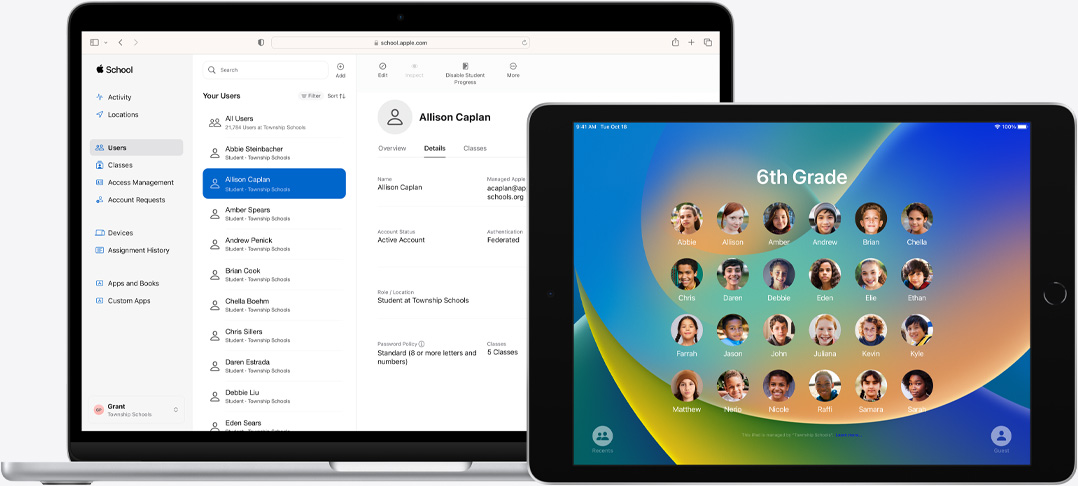 Okulun teknik destek sorumlusu Christopher Veljanovski, Apple School Manager sayesinde ?imdi her ??renciye ve ??retmene ayg?tlar?yla ilgili ihtiya? duyduklar? yard?m? sunabiliyor. Ayr?ca herkesin kendine ait bir Y?netilen Apple ID’si oluyor, b?ylece sürece kat?l?m kolayla??yor. Derslik uygulamas? e?itimcilerin ders planlar?n? da??tmalar?na ve ??rencilere ait ?al??malar? ger?ek zamanl? olarak de?erlendirmelerine imkan veriyor. E?itimcilerin ayg?tlar?ndaki Dosyalar uygulamas? ise ?al??malar? güven ve gizlilik i?inde payla?maya olanak tan?yor.